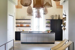 state of the art keuken met kookeiland, voorzien van allerlei apparatuur