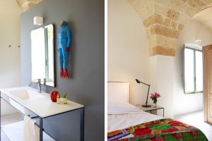 Met in totaal zes slaapkamers, elk weer in een geheel eigen sfeer ingericht, met elk een eigen badkamer. Eventueel aangevuld met twee extra bedden, biedt Tenuta Fabrizio plaats aan maximaal veertien gasten. Ooit het zomerverblijf van een adelijke familie uit Lecce, is de masseria recent geheel gerenoveerd en voorzien van alle 21ste eeuwse gemakken. Gebleven zijn de fraai gewelfde ruimtes, het bordes en de fraaie trappartij de tuin in, een duidelijk overblijfsel uit het nobele verleden van de villa.