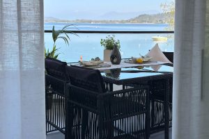 Het terras met meerzicht