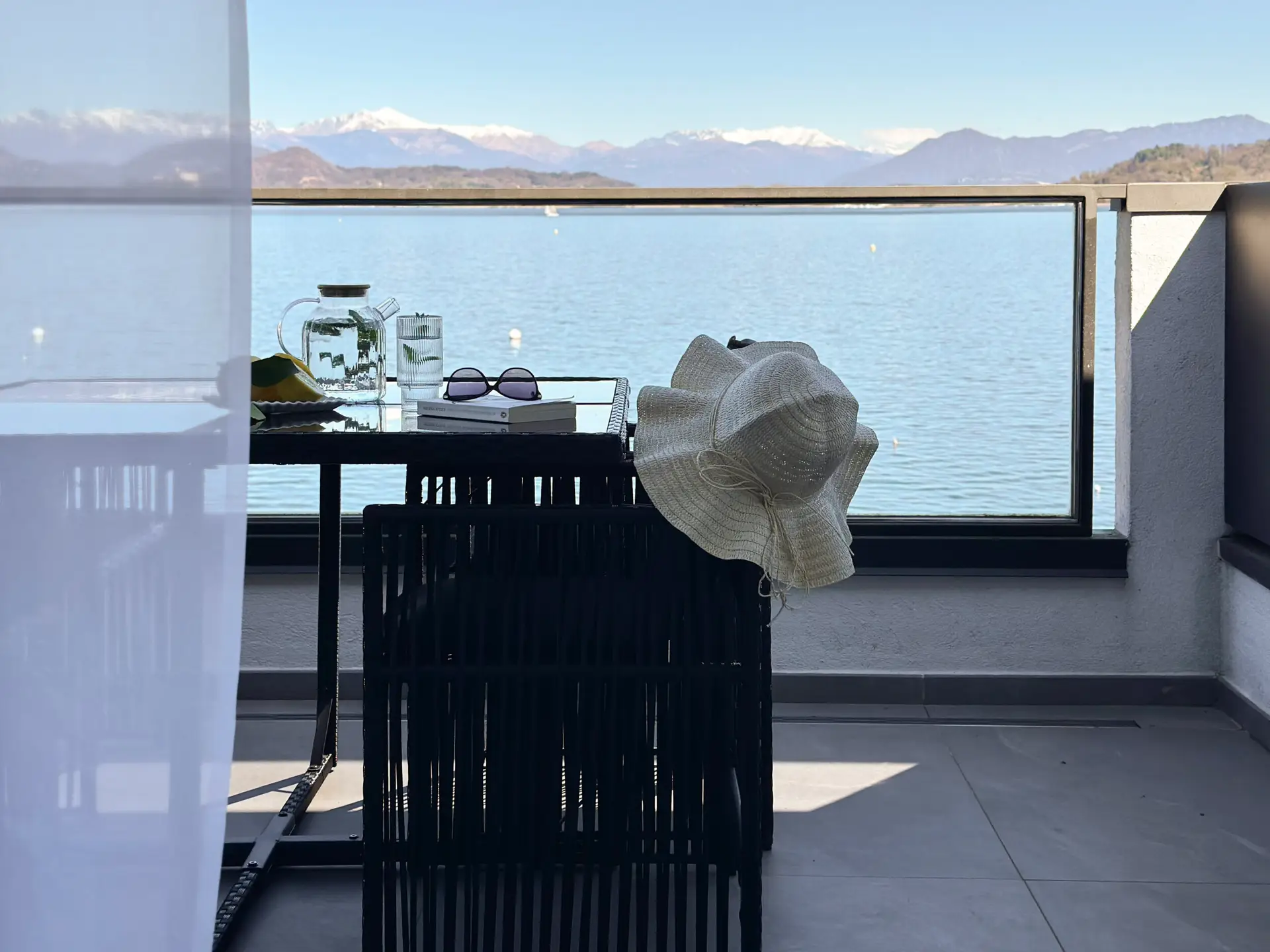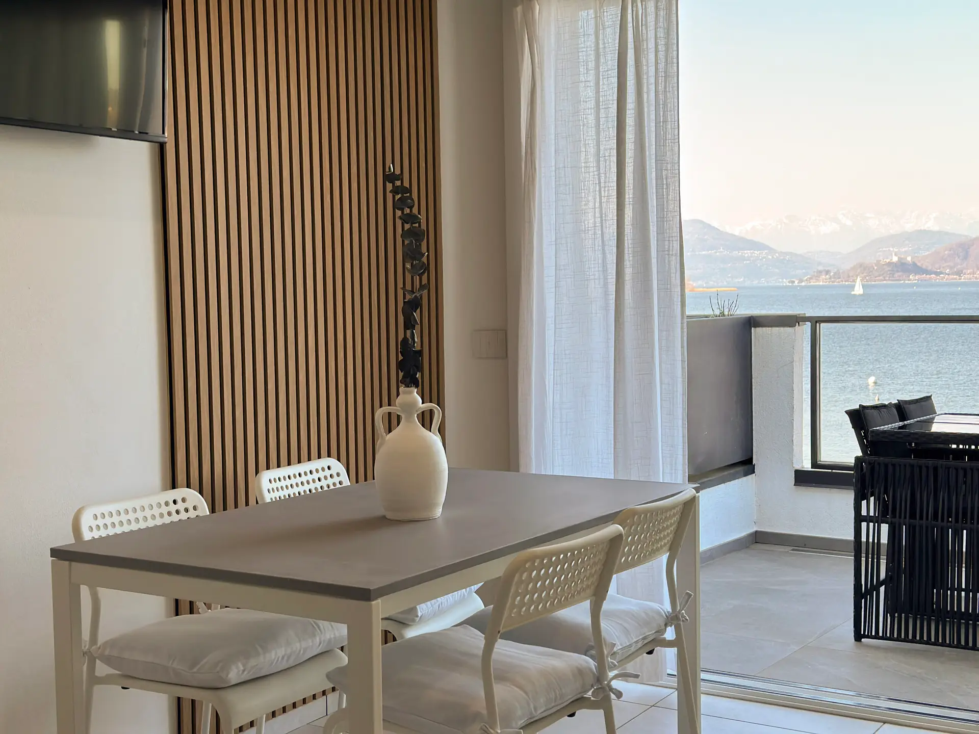 Eten met meerzicht. Elk appartement een terras met uitzicht op het Lago Maggiore.