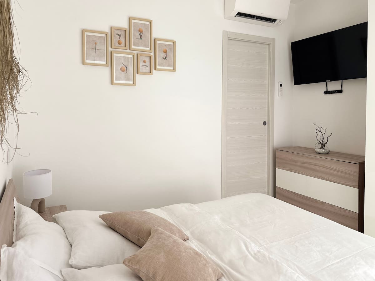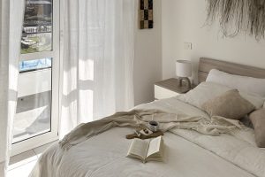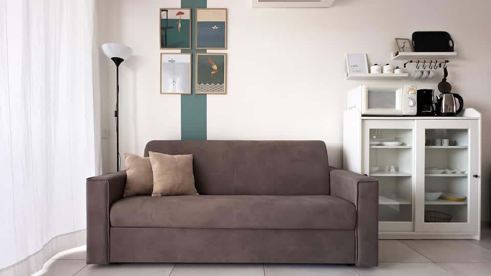 slaapkamer plus bedbank in living, slaapkamer met toegang tot balkon