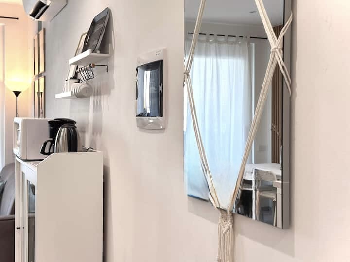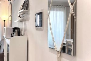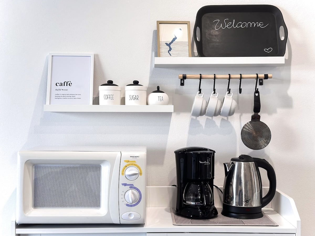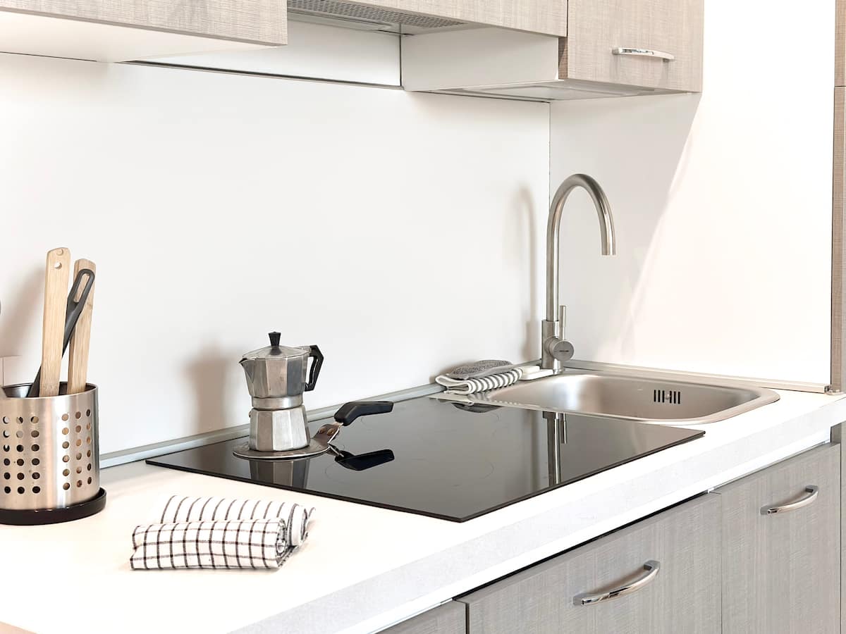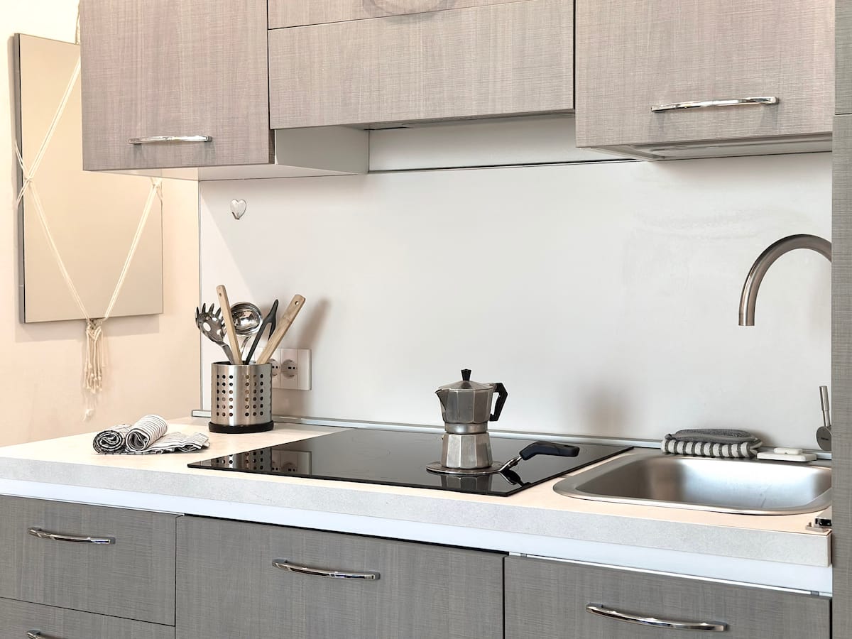 • Keukenblok in living, inductie kookplaat, koelkast met vriesvak, magnetron/oven, vaatwasser, wasmachine. Gemeenschappelijke BBQ in de tuin