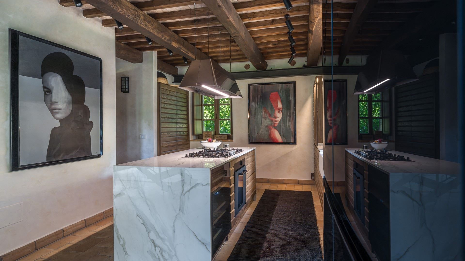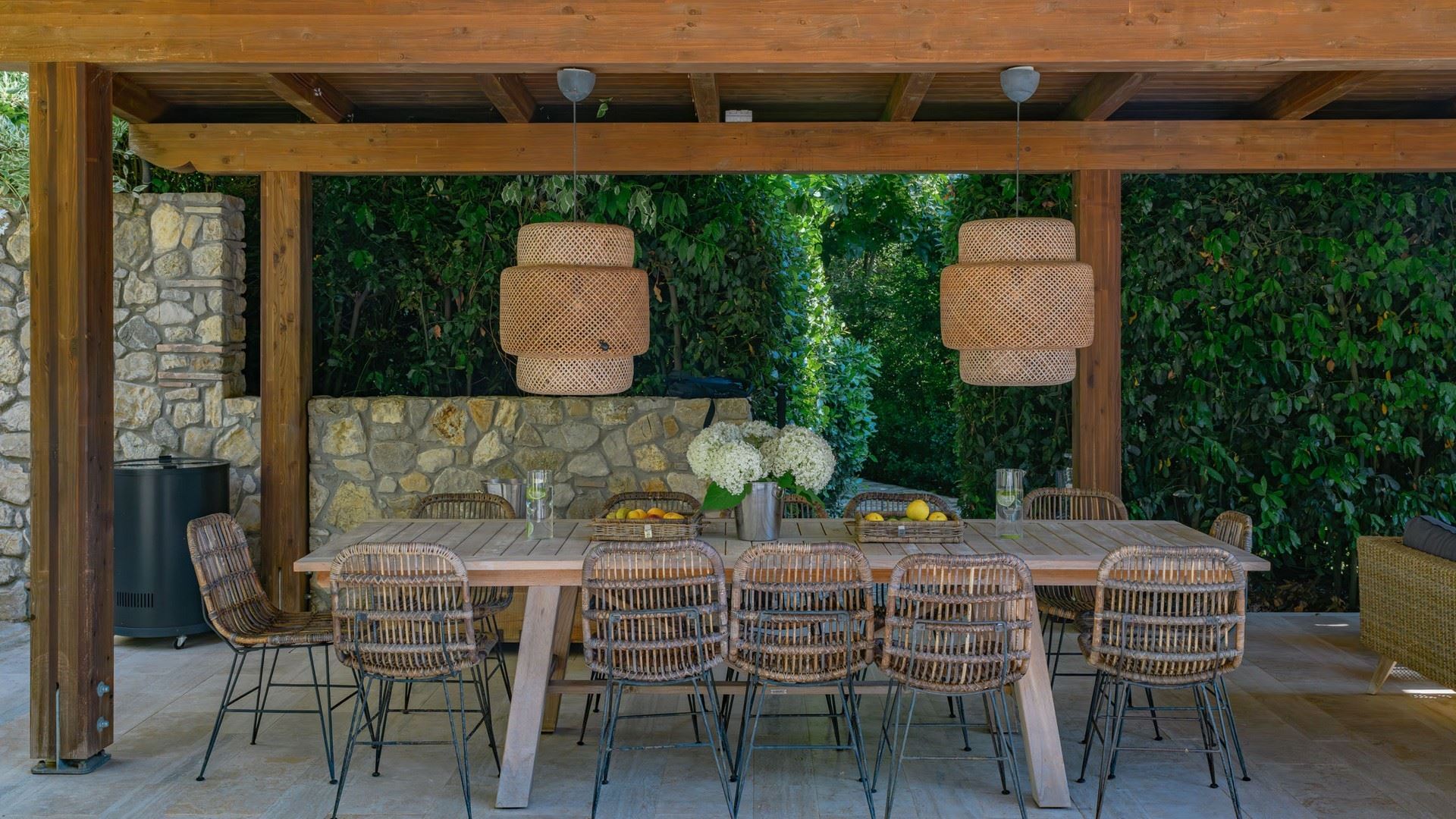 Met in Villa A op de begane grond een living en keuken en in Villa B een gemeenschappelijke woonkeuken, living en studeerkamer/werkplek en op de eerste verdieping een tweede living en keuken, is dit een ideale configuratie voor een groter gezelschap. Naast de vele zitkamers binnenshuis, telt elke villa een overdekt terras aan de villa met eettafel en zithoek. Daarnaast is er bij het zwembad een geweldig poolhouse met een grote zithoek en een eettafel.