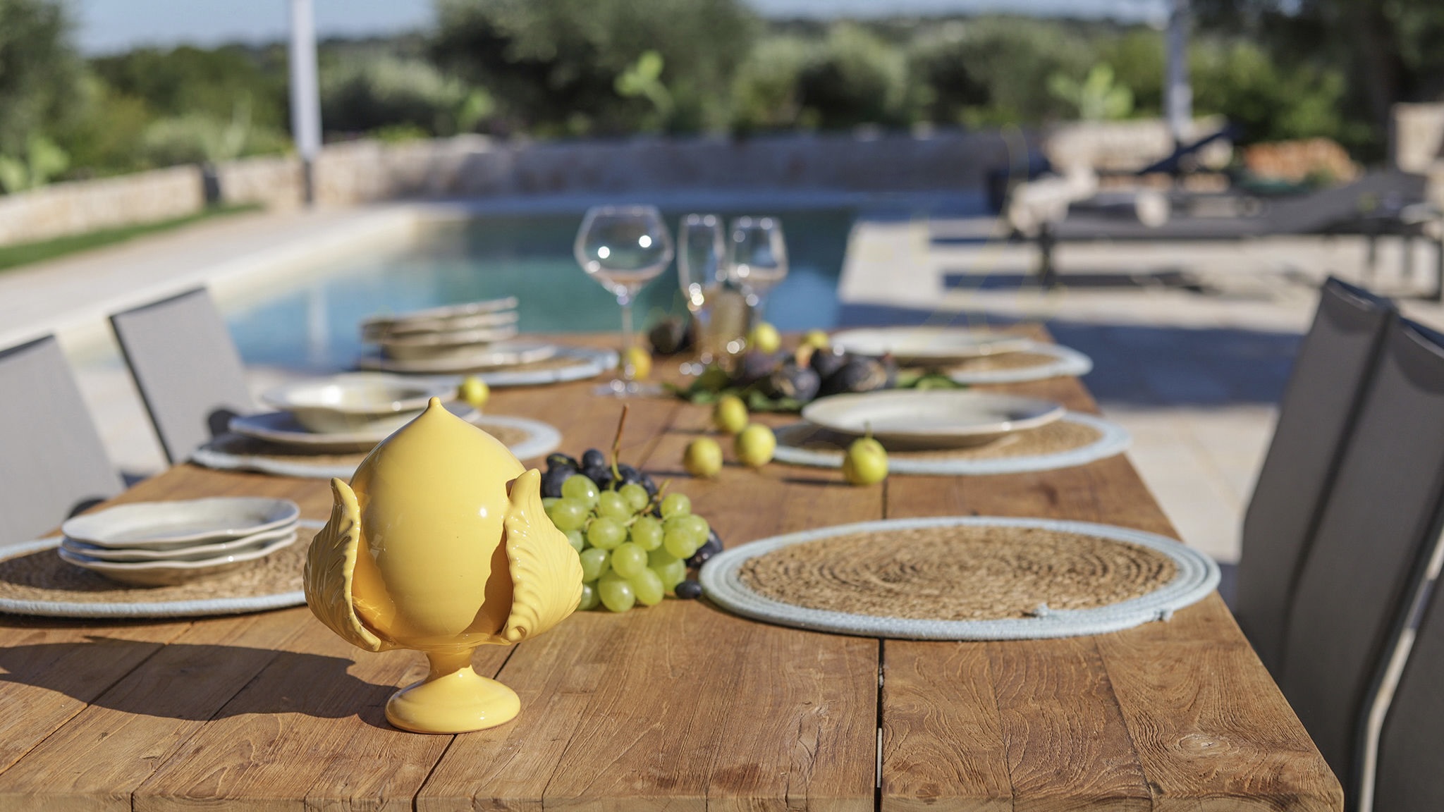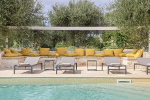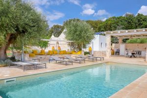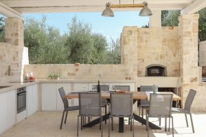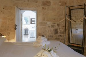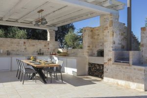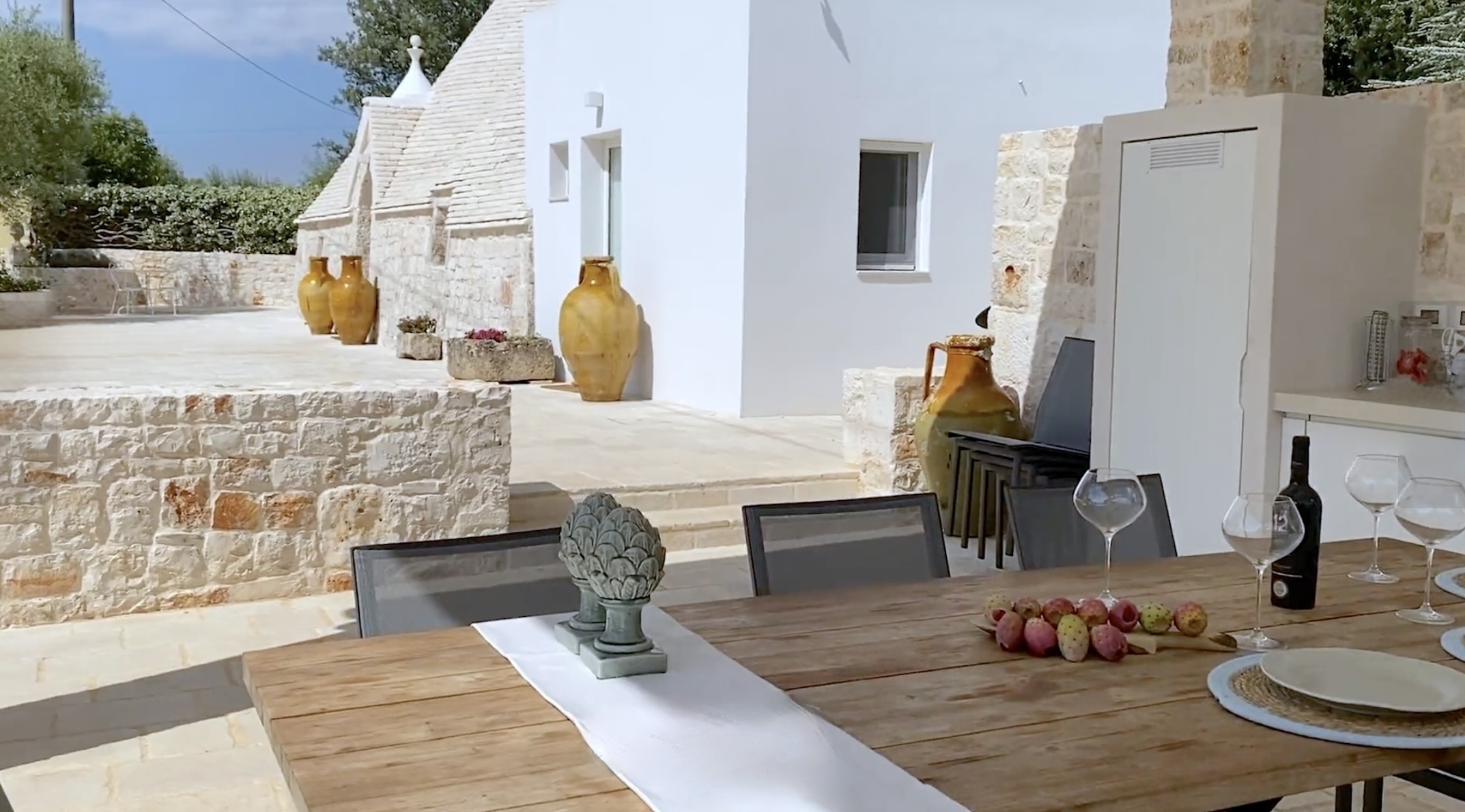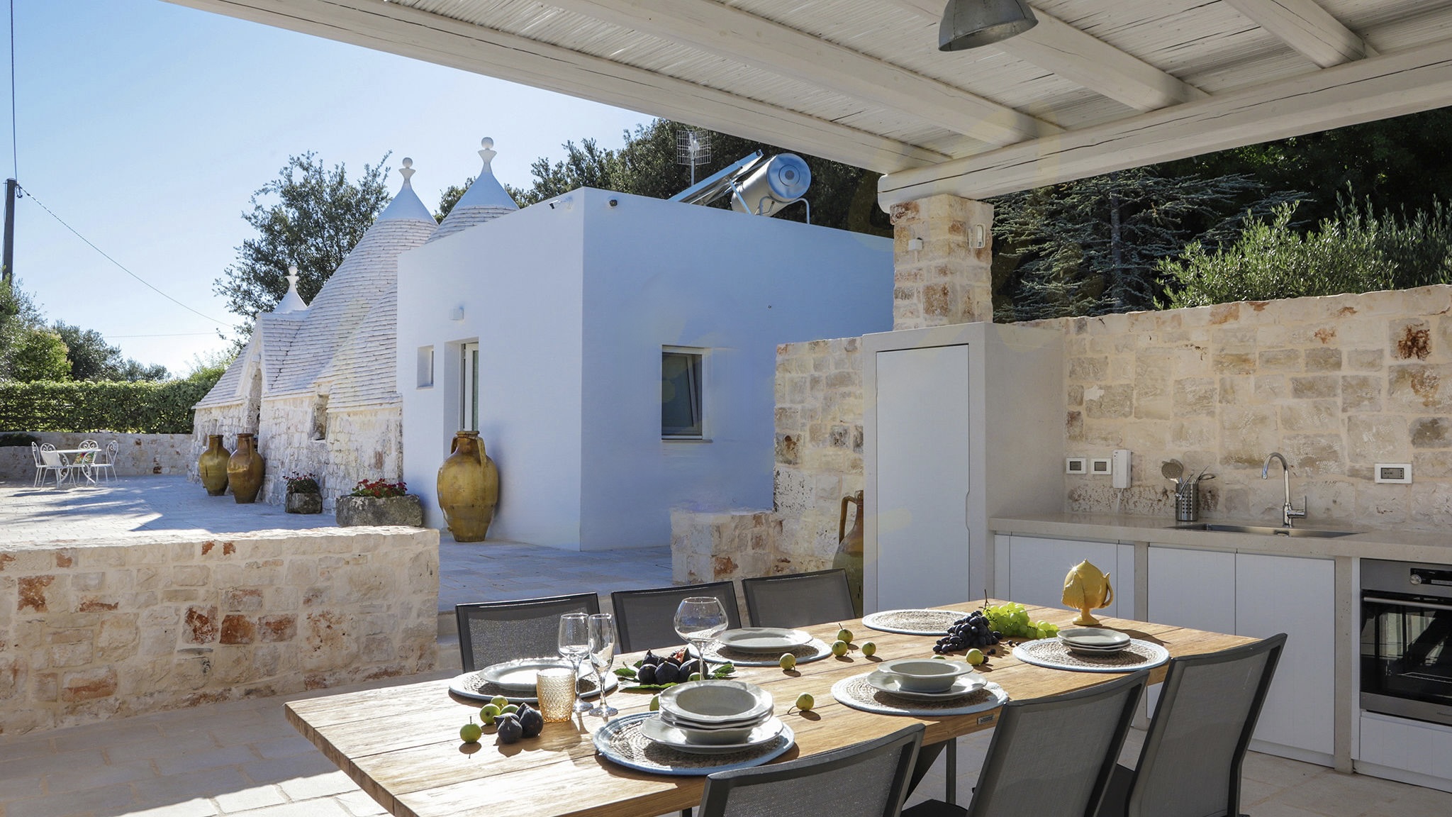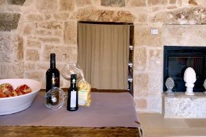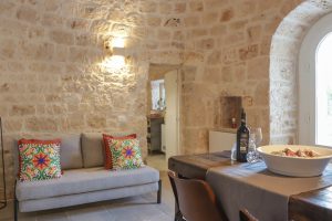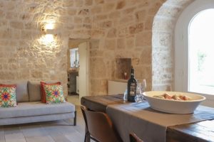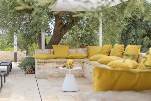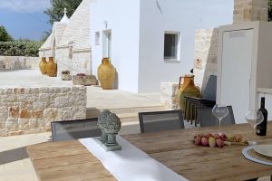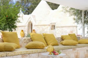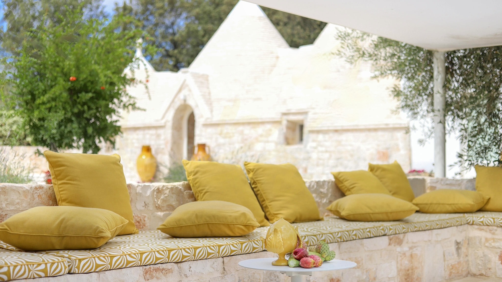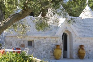 Sfeer. Lokatie. Authenticiteit. Ruimte. Dat zijn slechts een paar van de steekwoorden die Trulli delle Botte prima omschrijven. Sfeervol, zowel binnen in de gerenoveerde Trullo-woning waar moderne faciliteiten en de originele bouw perfect hand in hand gaan. Ook zeer sfeervol buiten waar een heerlijk comfortabele bank met een groot schaduwdoek, dé plek is om je dagen in zaligheid door te brengen. Het overdekte terras dat een prima plek is om buiten te eten en te genieten van het buitenleven. Authentiek in de vele details zoals de grote olijfkruiken die hun naam aan de trulli hebben gegeven. En lokatie – dan hebben we het niet alleen over de weelderige tuin, maar ook over de nabijheid van het stadje Monopoli – een echte must voor wie de witte stadjes van Puglia wil ontdekken. En vlakbij voor een dagje zee!