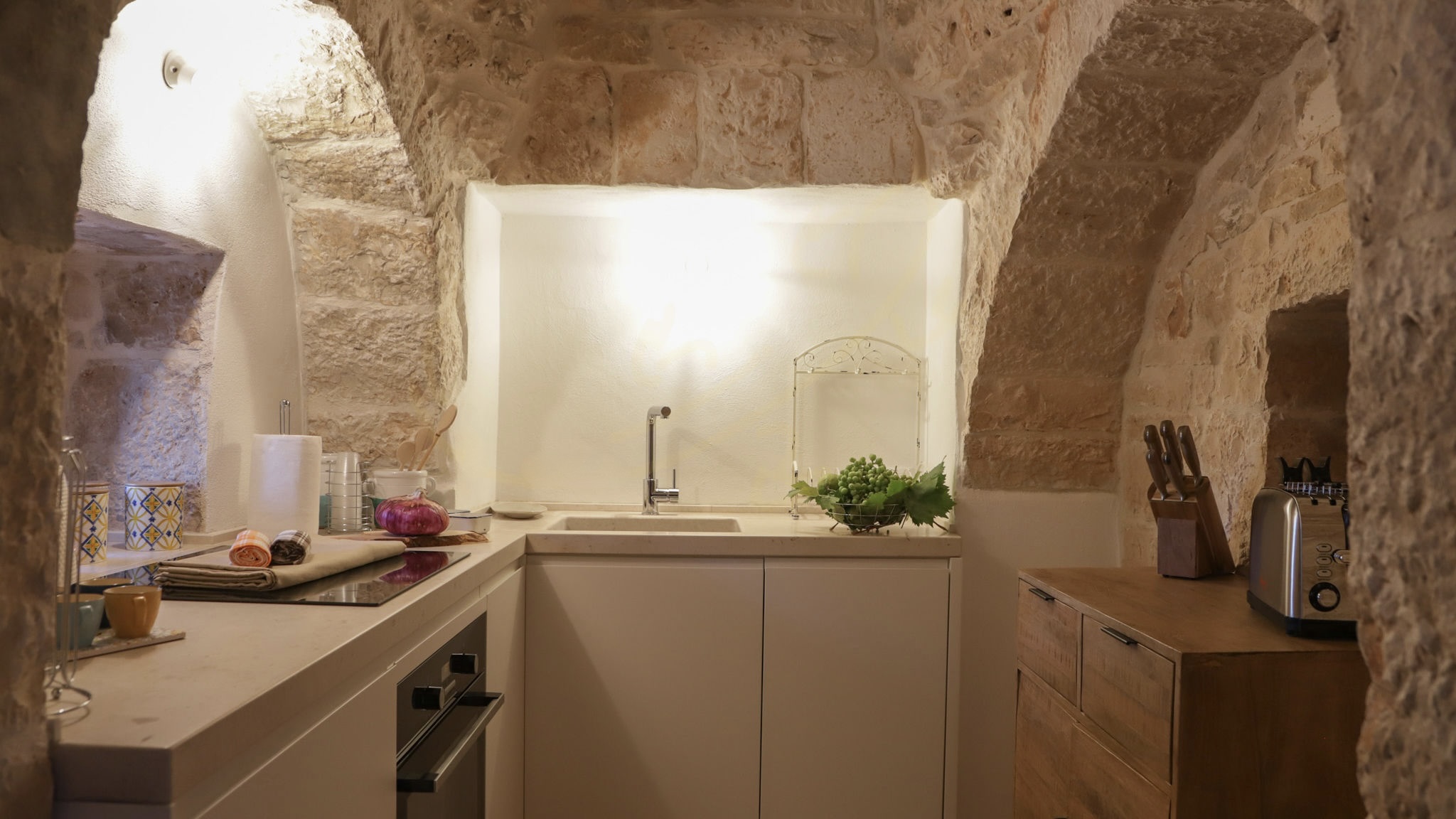 Met in totaal twee slaapkamers en twee badkamers, is Trulli delle Botte de ideale trullo voor vier gasten. Klein maar sfeervol, voorzien van alle gemakken en met een grote tuin. Daarbij is de ligging rustig, maar vlakbij allerlei top attracties. Zoals de grotten van Castellana, de hoofdstad van de trulli, Alberobello. En met het schilderachtige Monopoli aan zee ook vlakbij!