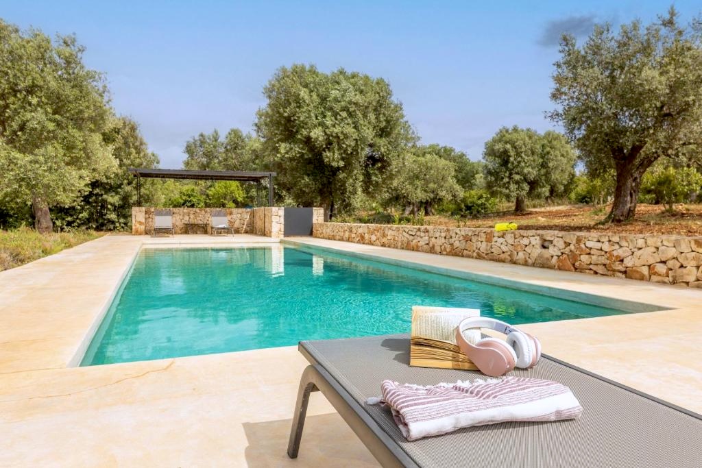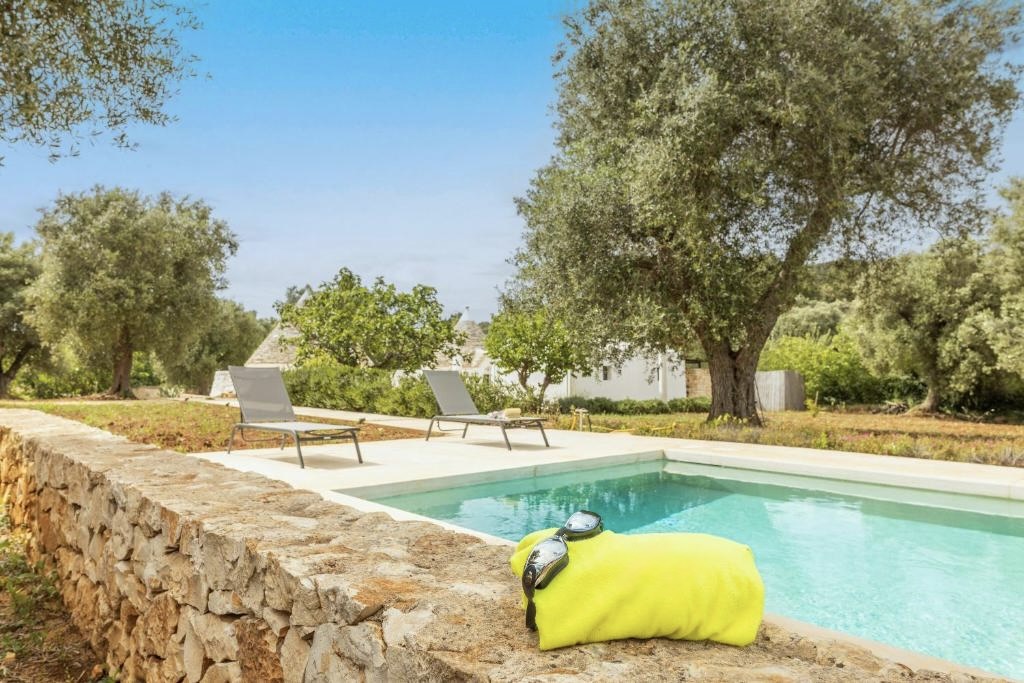 Ruim 14.000 land met olijfbomen. Rond de villa een fraai aangelegde tuin, met binnenplaats tussen de trulli en de lamia. Aan de lamia een overdekt terras met buitenkeuken met BBQ. Terras met ligbedden bij het zwembad