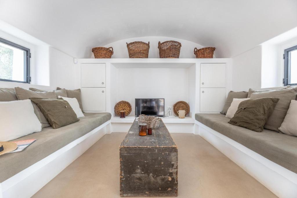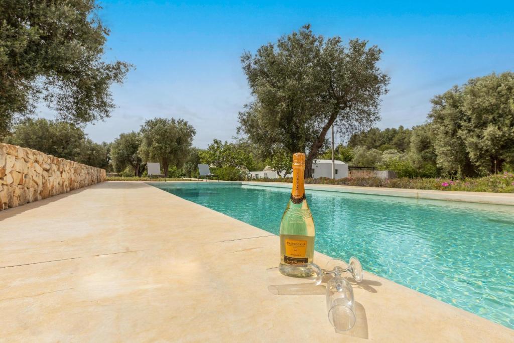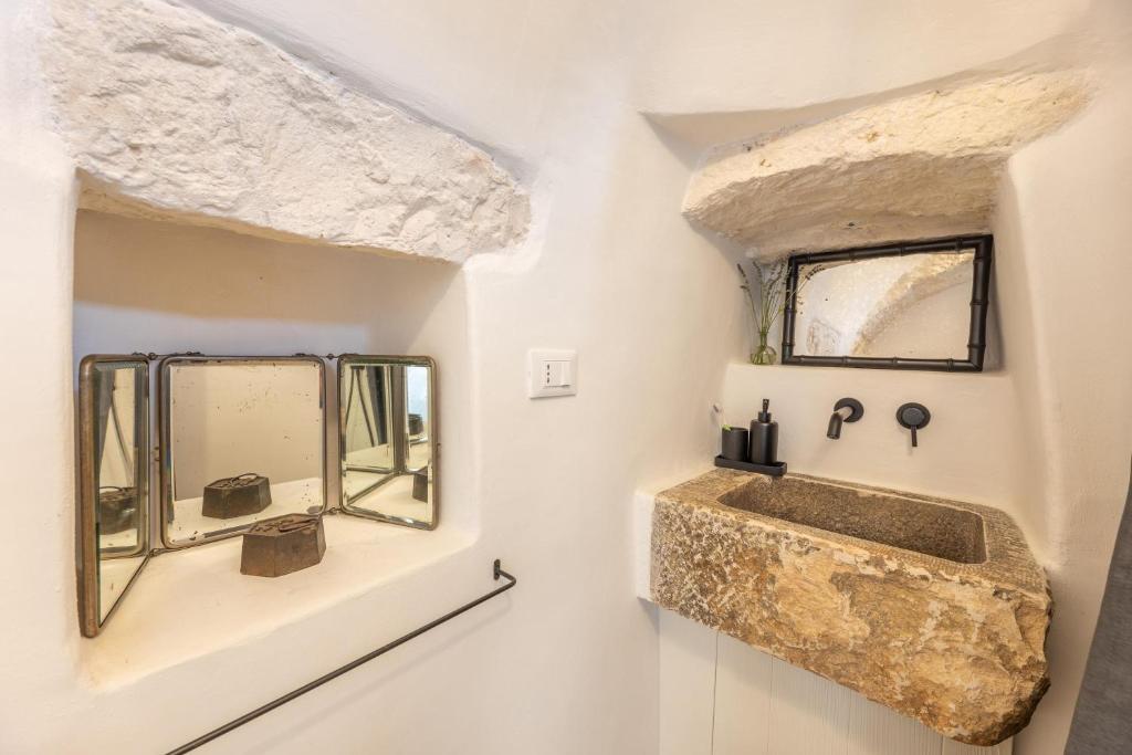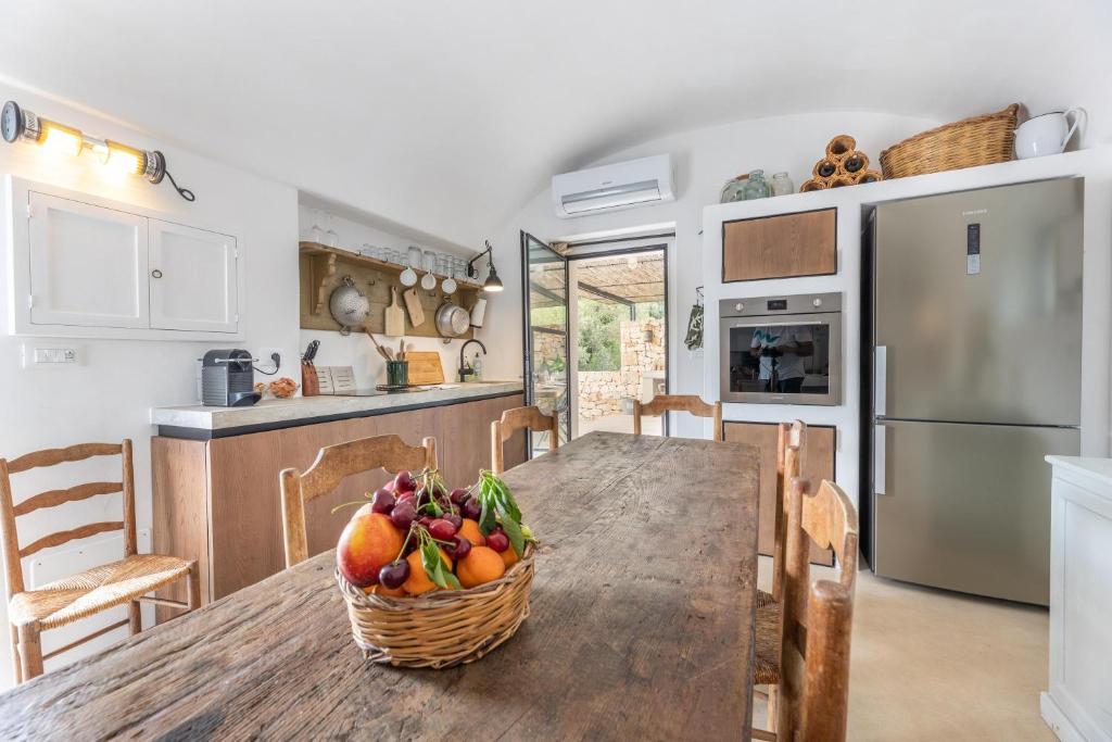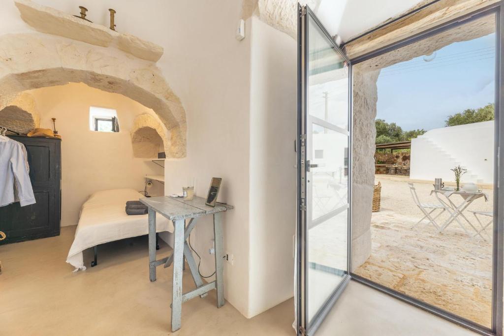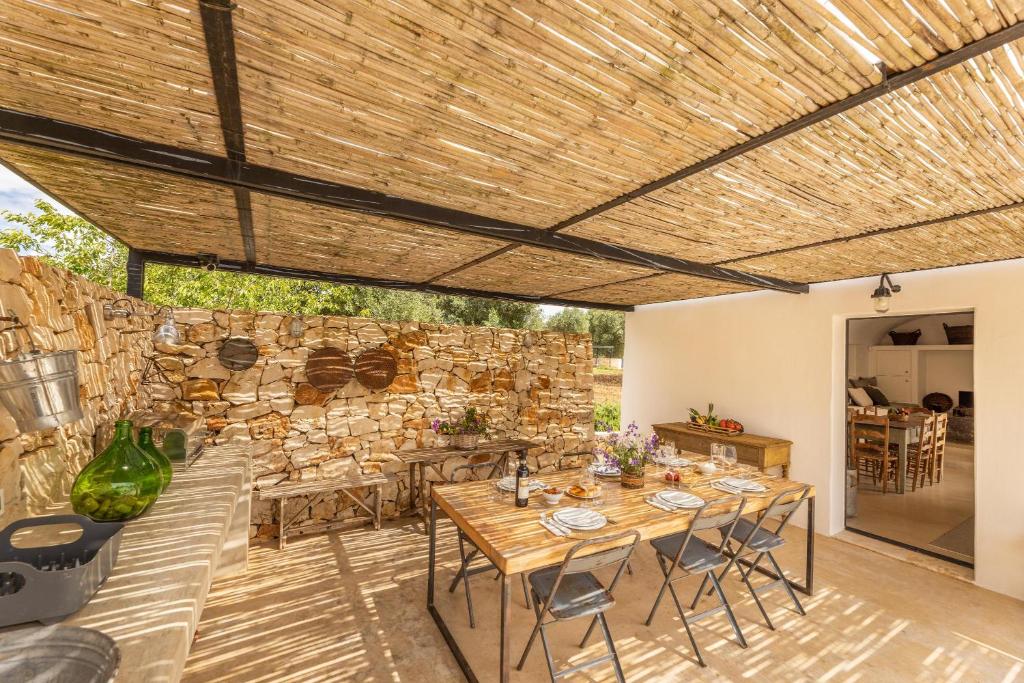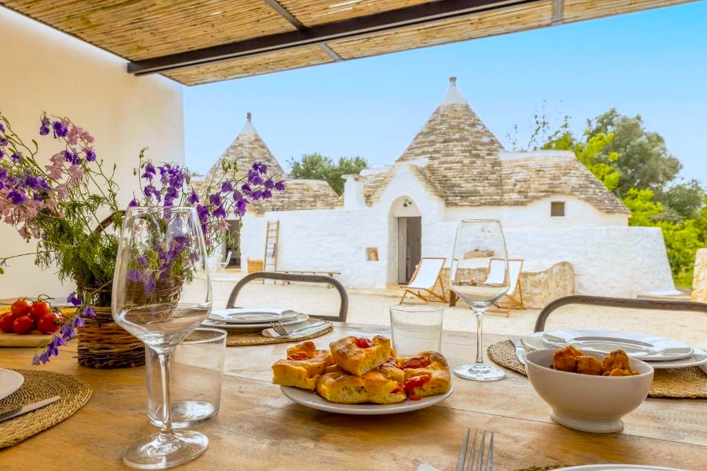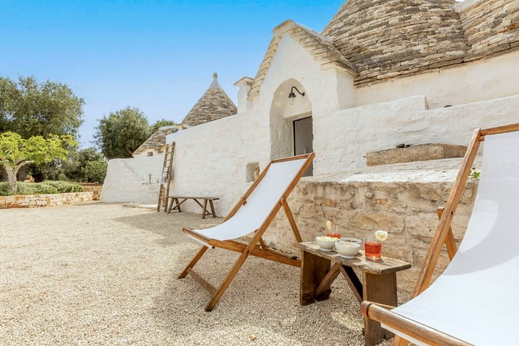 Trullo Pascarosa bestaat uit twee historische trulli die recent zorgvuldig zijn gerenoveerd en omgeven door eeuwenoude olijfbomen en lokale stenen muren. De uitnodigende interieurs, met stenen bogen, ronde gewelven en allerlei authentieke details, bieden een perfecte mix van moderniteit en rustieke charme. Met in de langgerekte lamia het woongedeelte met een grote living met eettafel, zithoek en een keuken. Buiten voor deze living is een overdekt terras gemaakt met eettafel. Hier is ook een werkblad gemaakt met BBQ.