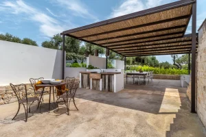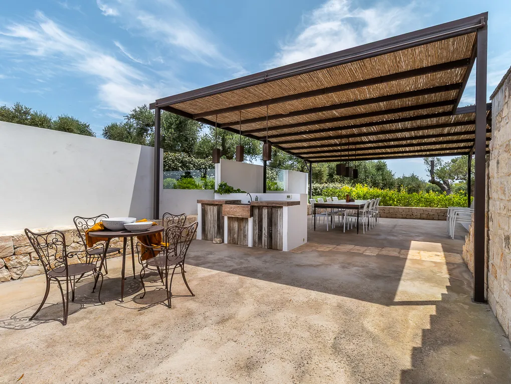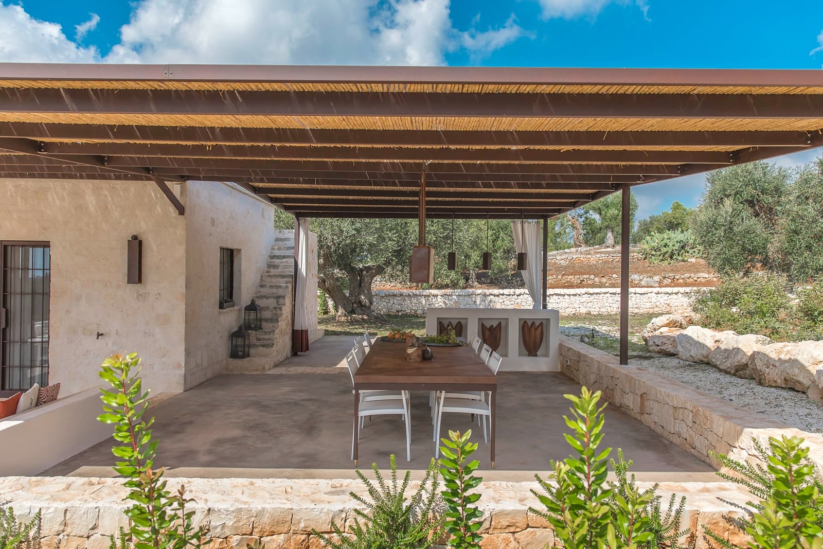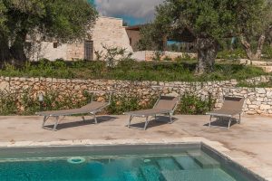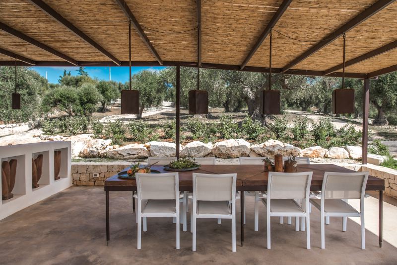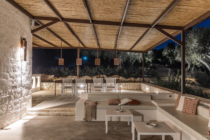 Wanneer je van die typische sfeer van Puglia houdt, relaxt en minimalistisch. Maar tegelijkertijd ook gesteld op ruimte en hedendaagse luxe, dan is Trullo Silvano dé oplossing. Van de natuurstenen buitenmuren tot het stoere, ingezeepte marmeren aanrechtblad of de fraaie gewelven en de alkoof met de open haard. Er wordt al direct die kenmerkende Pugliese sfeer neergezet. Voeg hier het overdekte terras toe met de opgemetselde banken die een grote loungehoek vormen. De grote eettafel en daarachter de buitenkeuken. Of het dakterras vanwaar je van spectaculaire zonsondergangen kan genieten en er valt buiten weinig meer te wensen. En natuurlijk niet te vergeten het zwembad dat op een iets lager niveau in de tuin, omgeven door eeuwenoude olijfbomen is aangelegd. Een geweldige plek met een weids uitzicht over het platteland.