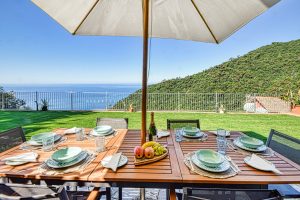 Heerlijk. wat een plek! Zo bijna aan het eind van een weggetje vanaf de kust de heuvels in. Met een schitterend uitzicht dat op je wacht. Overal in de tuin, bij het zwembad, op het zonneterras. En zelfs vanuit het huis, waar alles naar de zee toe is gericht. Ideaal gelegen om af en toe de trein te kunnen pakken die je in een oogwenk naar de bruisende stad Genua brengt.