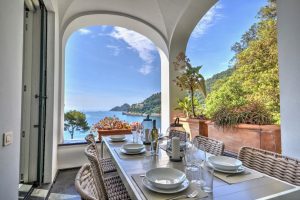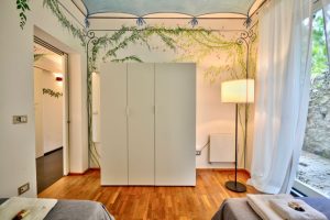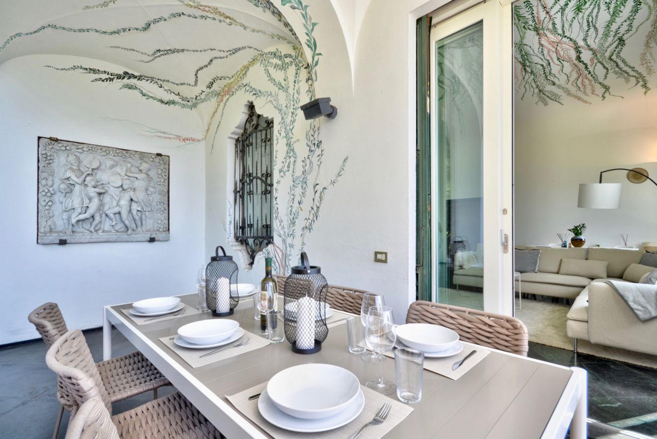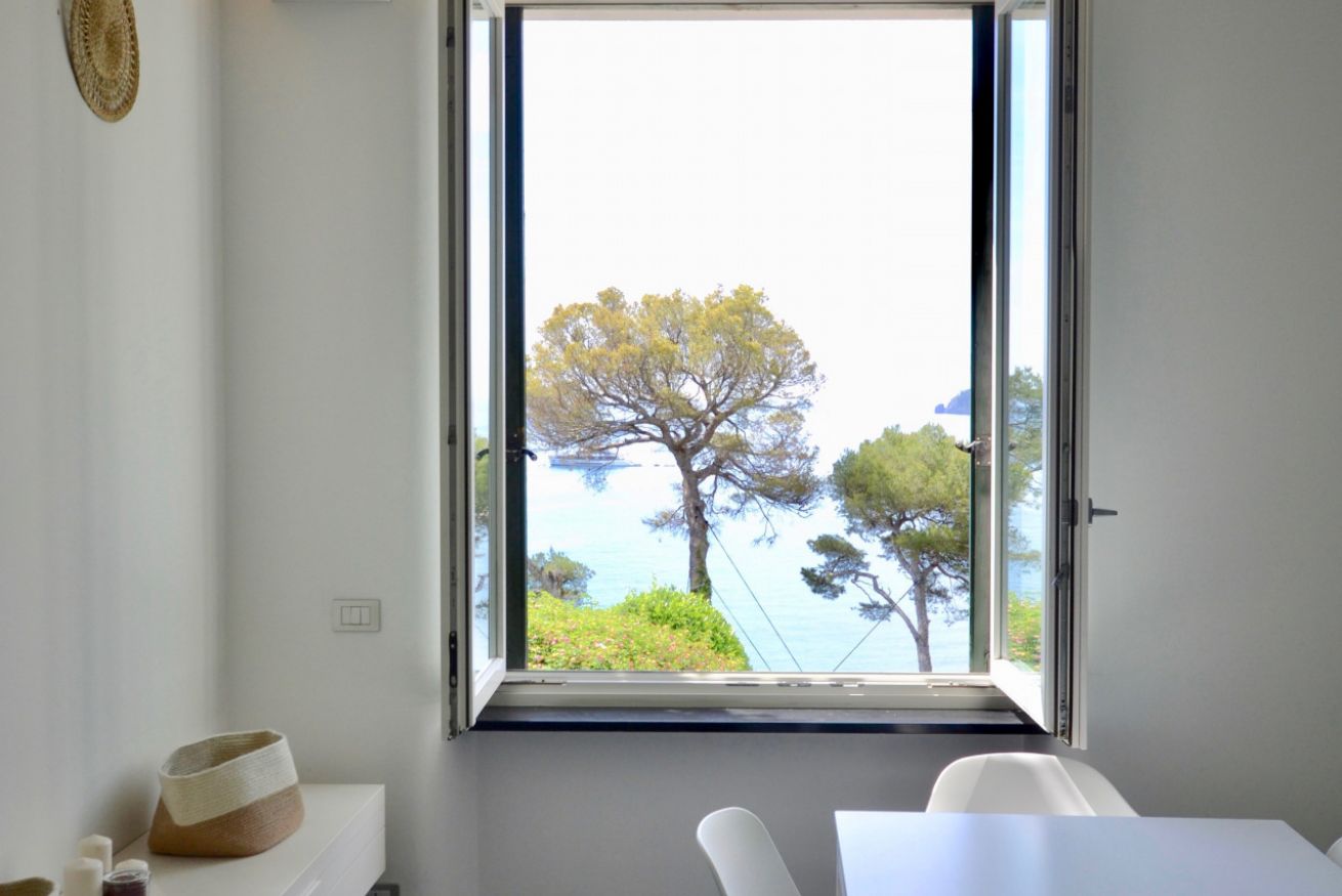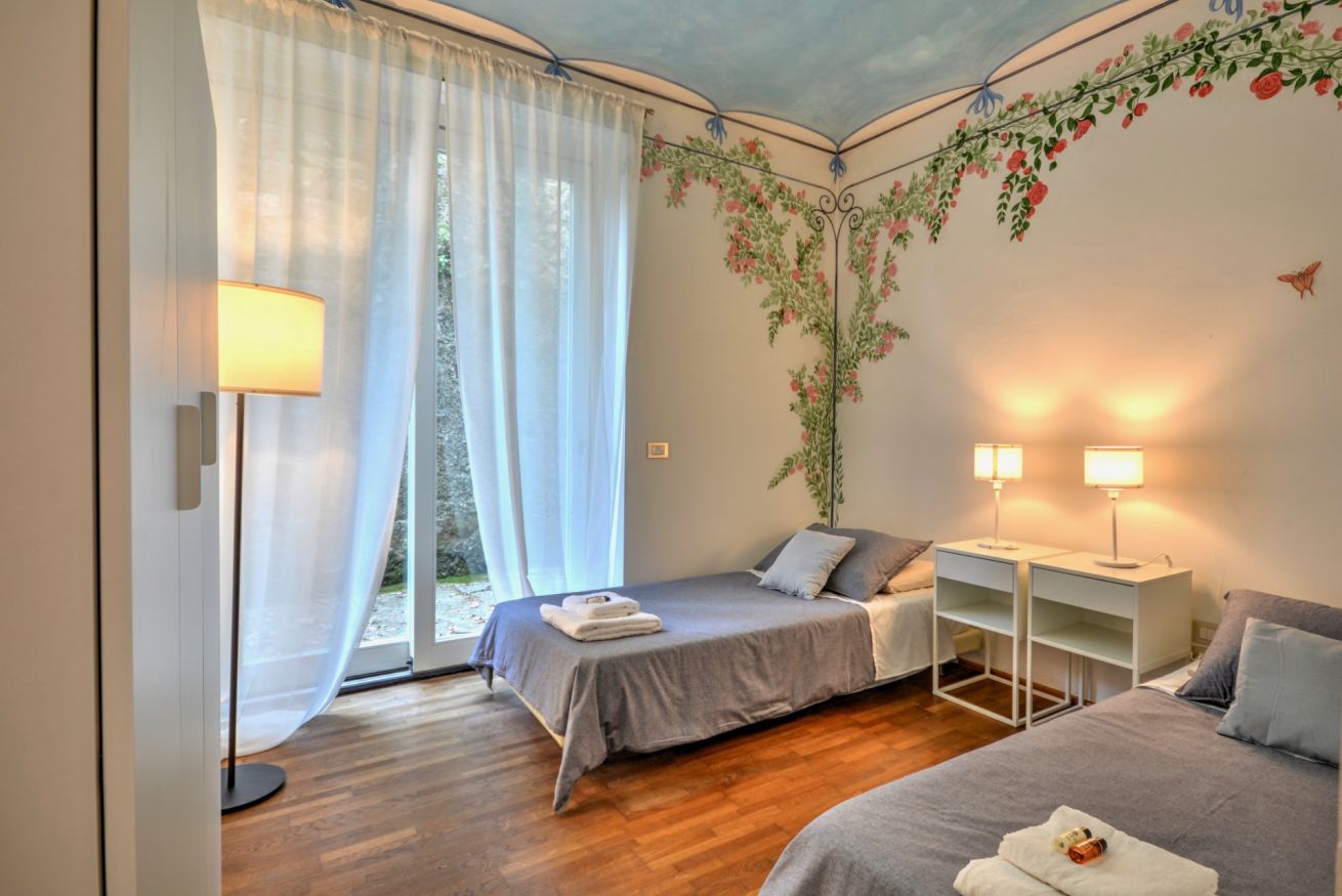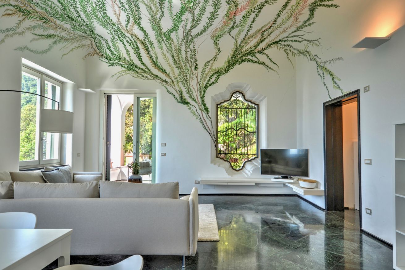 Origineel. Uniek zelf, zoals de kamers van Villa delle Rame zijn beschilderd. Met takken en ranken die over muur en plafond uitwaaieren en elke ruimte een eigen karakter geven. Een bijzonder en tegelijkertijd hoogst modern appartement op de begane grond van een historische villa aan zee gelegen, halverwege het schiereiland van Portofino. Een combi van historisch en eigentijds, aangevuld met een artistieke toets die van Villa delle Rame een ‘on of a kind’ huis maakt. Voeg daar de super-ligging aan zee aan toe, met een mooie zandbaai op loopafstand, en niets staat je in de weg om een super-vakantie te hebben.