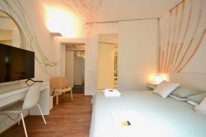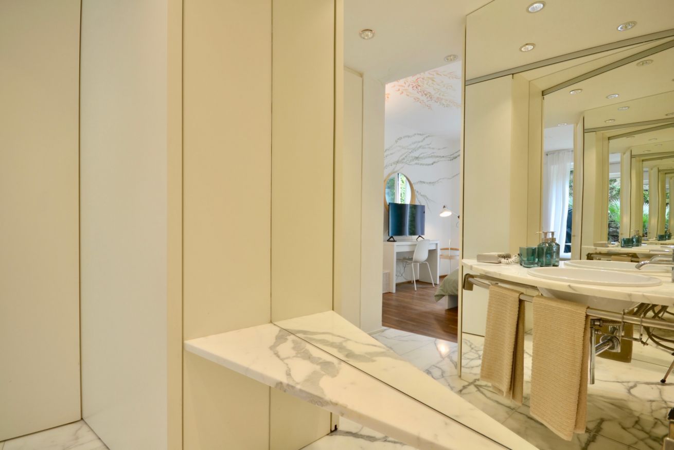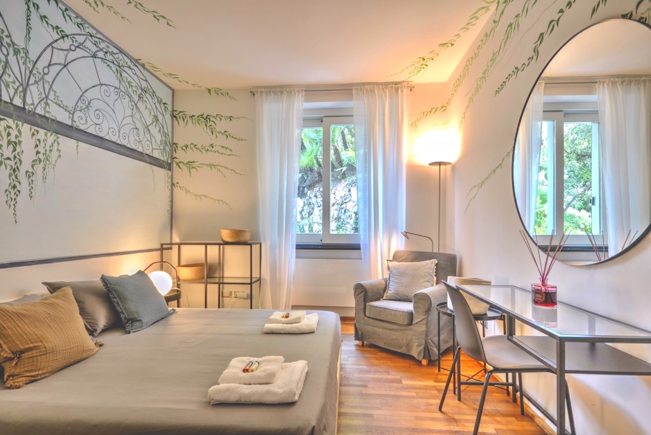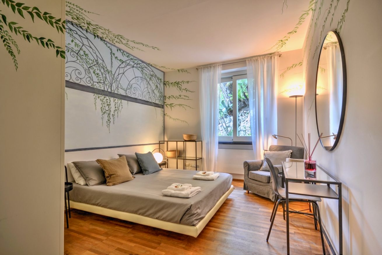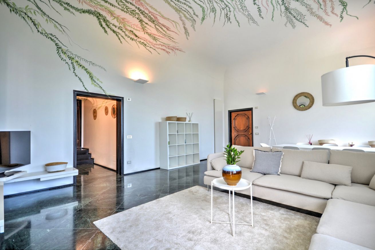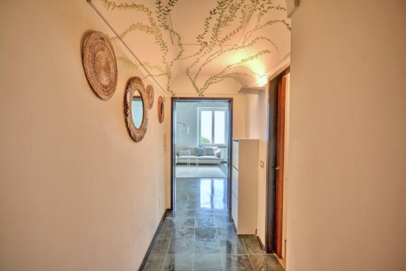 Origineel. Uniek zelf, zoals de kamers van Villa delle Rame zijn beschilderd. Met takken en ranken die over muur en plafond uitwaaieren en elke ruimte een eigen karakter geven. Een bijzonder en tegelijkertijd hoogst modern appartement op de begane grond van een historische villa aan zee gelegen, halverwege het schiereiland van Portofino. Een combi van historisch en eigentijds, aangevuld met een artistieke toets die van Villa delle Rame een ‘on of a kind’ huis maakt. Voeg daar de super-ligging aan zee aan toe, met een mooie zandbaai op loopafstand, en niets staat je in de weg om een super-vakantie te hebben.
