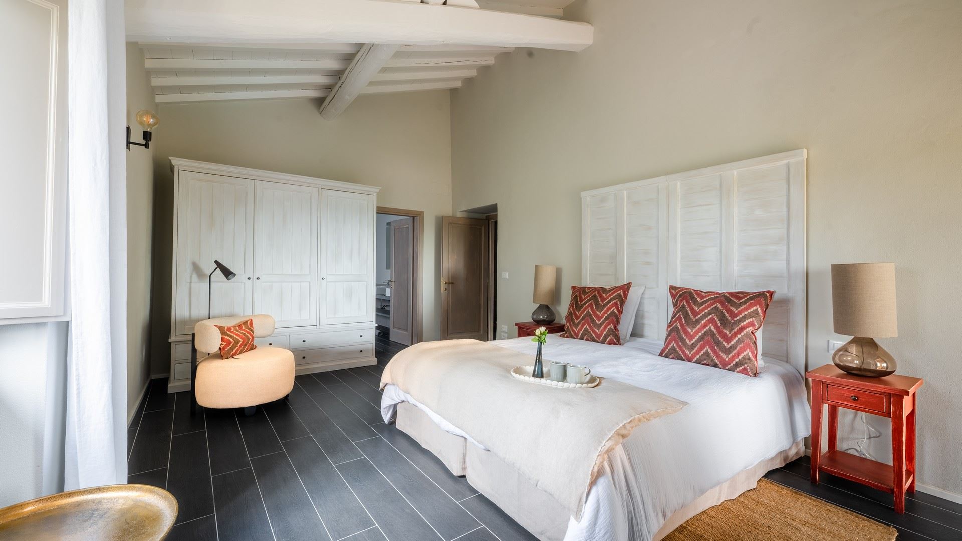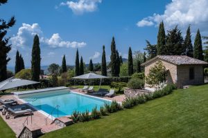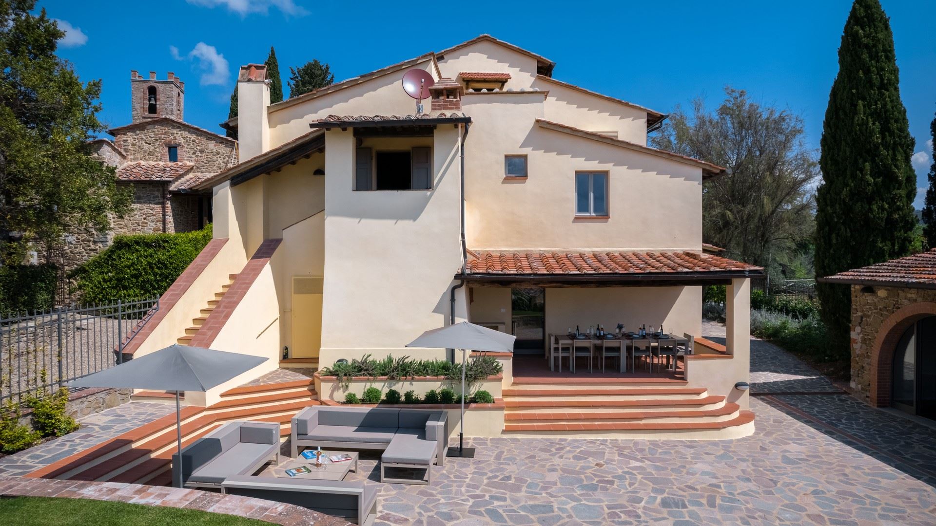 Met in totaal zes ruim bemeten slaapkamers, elk met een eigen badkamer, biedt Villa Gote Rosa ruim plaats aan maximaal twaalf gasten. Verdeeld over de villa en een apart gelegen annex, is dit een bijzonder landhuis dat midden in het Chianti wijngebied is gelegen. Met een locatie aan de rand van een kleine, middeleeuwse borgo, gezet je hier van een weids en vrij uitzicht over de landerijen, Maar achter de villa, omhoog tegen de heuvel opgebouwd, ligt een klein middeleeuw gehucht met een aantal andere villa’s en een kapelletje die ervoor zorgen dat je niet in de middle of nowhere bent beland.