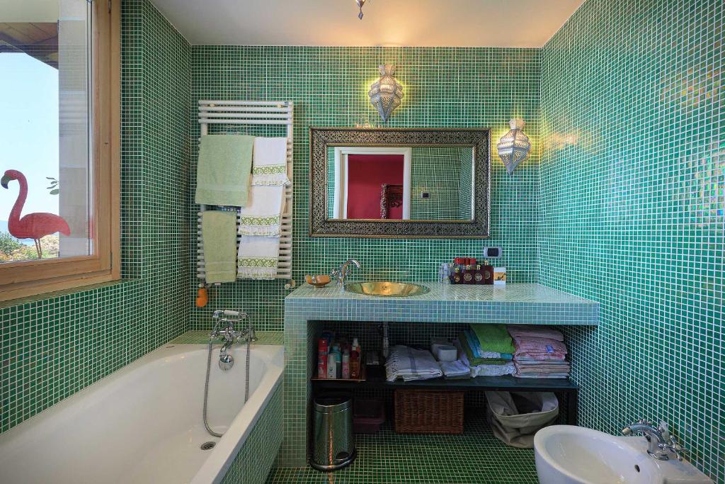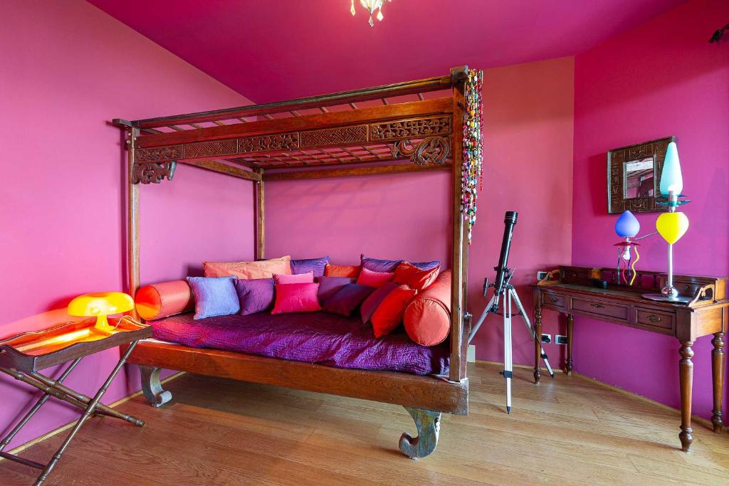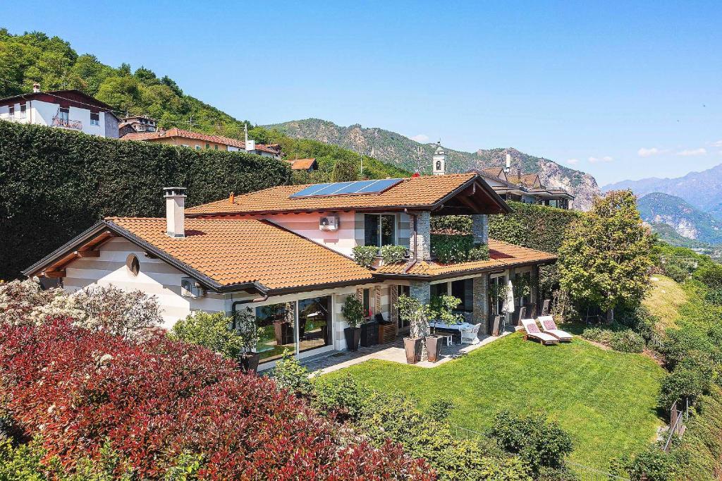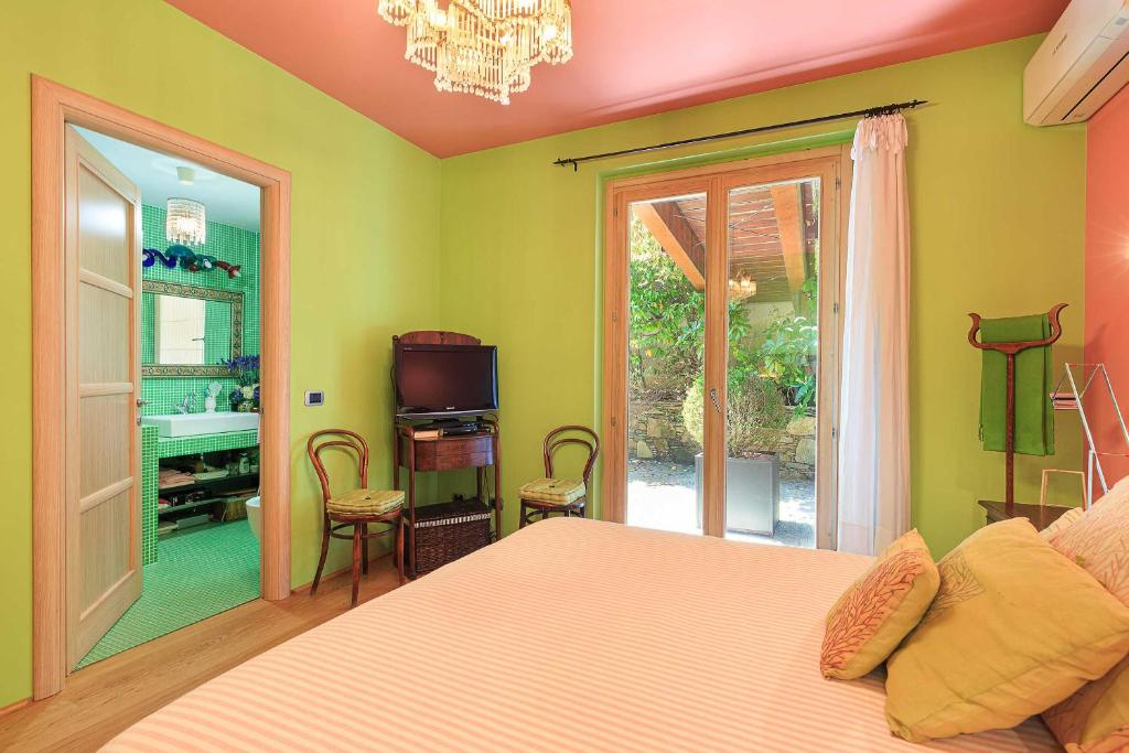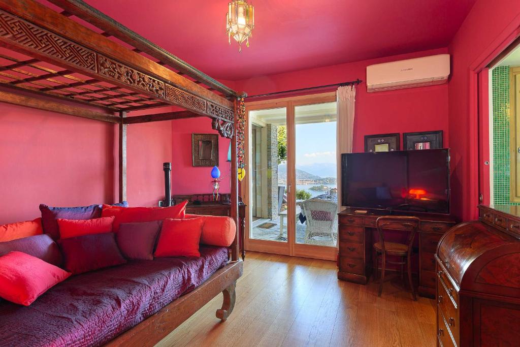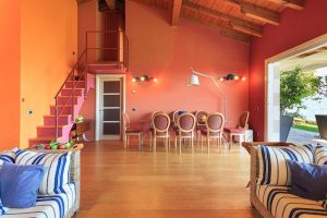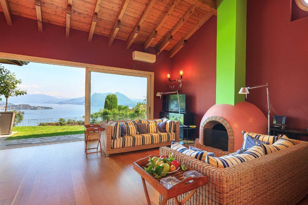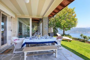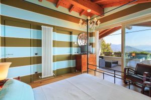 Wow! Wat een uitzicht! De Borromeo eilandjes liggen gewoon recht voor je neus! Wat een panorama, het meer, de bergen rondom … Een heerlijke plek en een uitnodigende villa. Met een vrolijk interieur, dat de kleuren van de tuin en het meer alle recht aandoet.