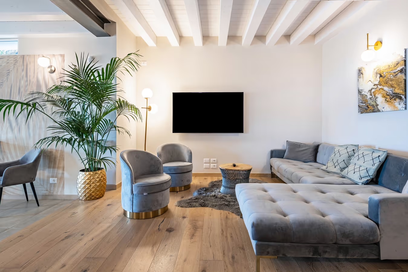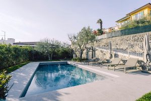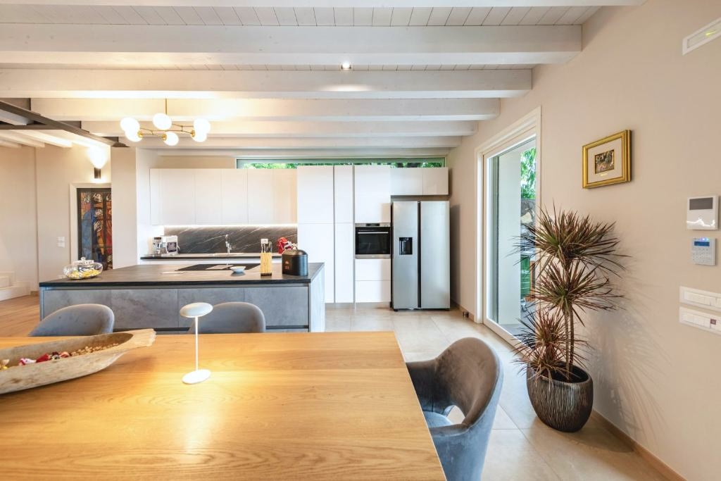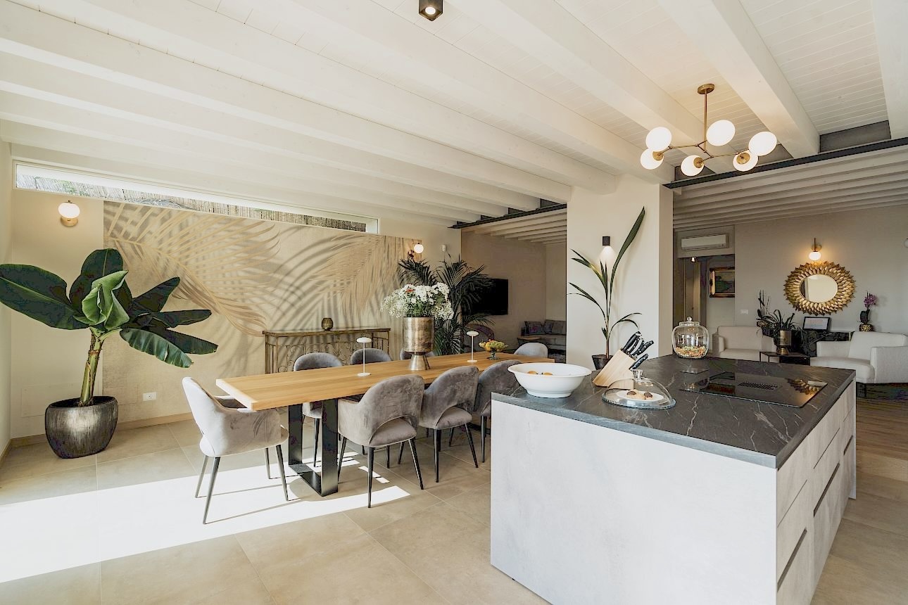 Naast de drie slaapkamers, biedt Villa MOnsogno een ruime living met een comfortabel zitgedeelte en een grote woonkeuken die uitkomt op het overdekteterras. Met aan de linkerkant een grote eettafel en rechts het kookeiland, is dit het onbetwiste hart van de villa. Vanuit de keuken loop je zo het terras op waar een eettafel staat en waar ook een zithoek is gemaakt. Op een lager niveau in de tuin is het zwembad te vinden, met een mooi gazon met sinaasbomen. Een heerlijke plek om van de zon te genieten op een van de ligbedden en af en toe ene frisse duik te nemen.