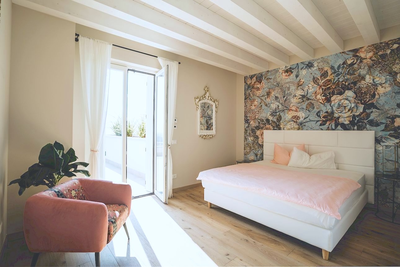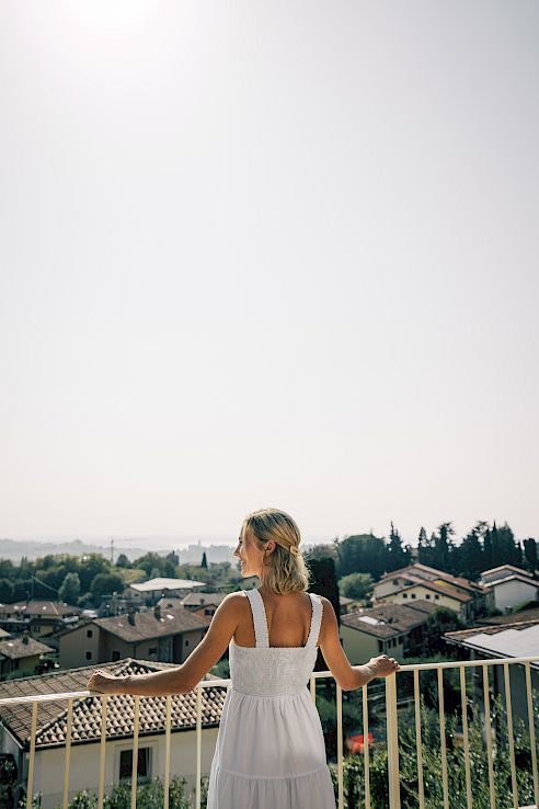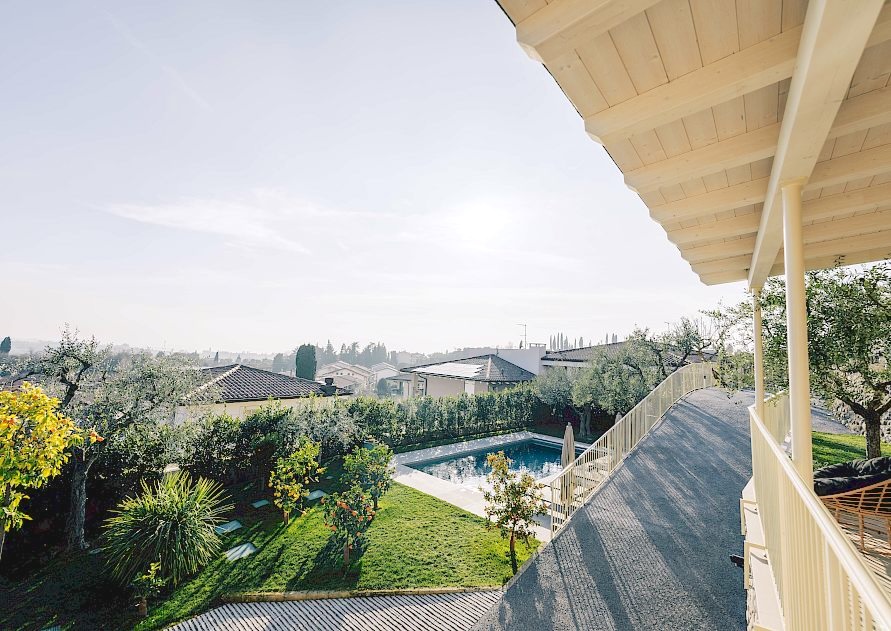 Gelegen in een rustige wijk, in een stadje iets boven Lazise en Bardolino gelegen, geniet je hier van een verhoogd uitzicht. Maar ook van de nabijheid van het meer en tegelijkertijd ook het achterland van de Valpolicella.