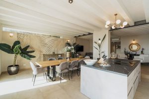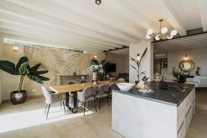 Open plan living met eethoek en moderne keuken, zithoek, wifi, airco