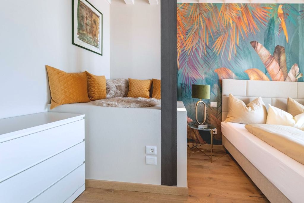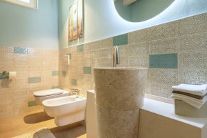 Met drie ruimbemeten slaapkamers, elk met een tweepersoons bed, biedt Villa Monsogna plaats aan maximaal zes gasten. In hetzelfde gebouw, maar met een geheel eigen ingang en met eigen zitkamer met keukenhoek, liggen nog twee appartementen, die geen gebruik maken of zicht hebben op de tuin en het zwembad maar desgewenst wel toegevoegd kunnen worden aan de villa, waarmee de capaciteit met twee extra slaapkamers op maximaal tien uitkomt.
