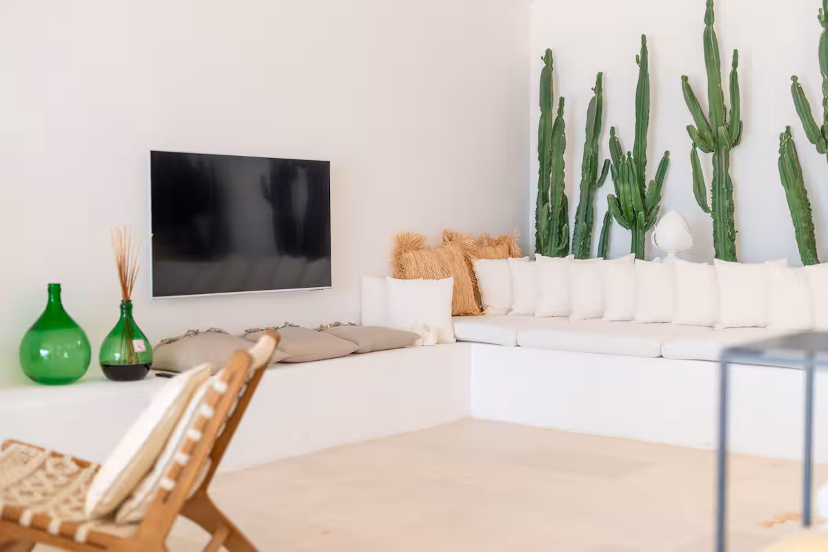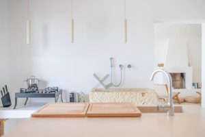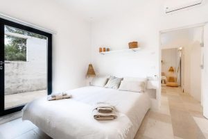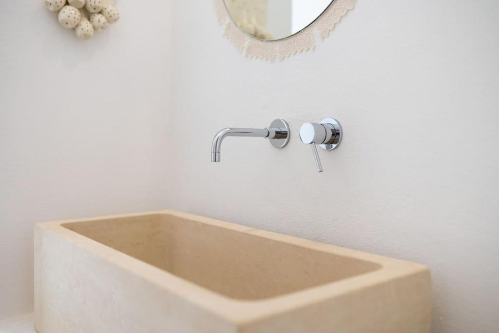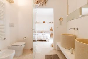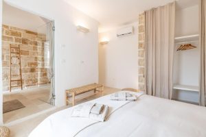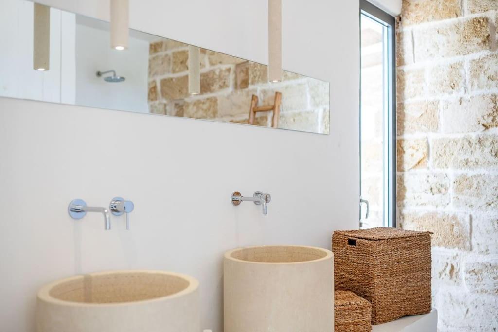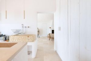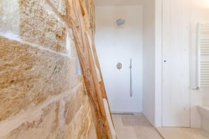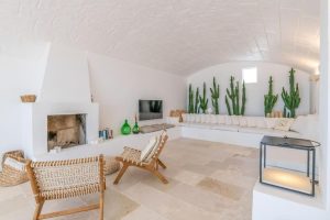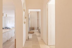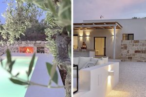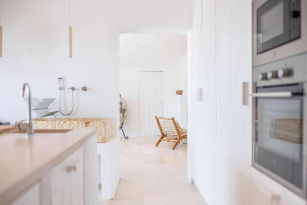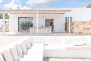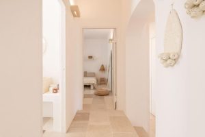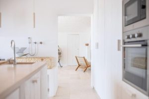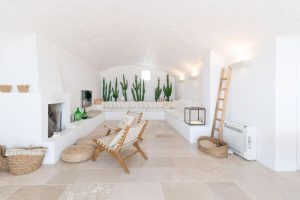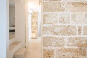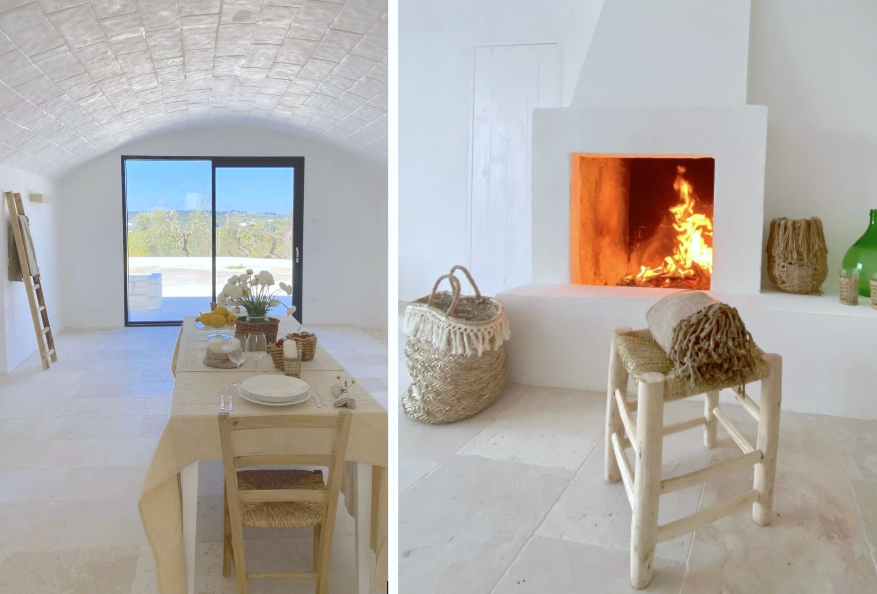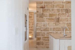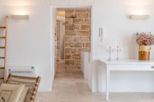 Met in totaal drie slaapkamers, elk met een eigen badkamer, biedt Villa Vallegna ruim plaats aan maximaal zes gasten. Geheel gelijkvloers opent de villa met de grote living. Een sfeervolle ruimte met een comfy zitgedeelte met open haard en een gezellig ingebouwde hoekbank met de nodige kussens. Rechts van de living is de keuken gelegen, een minimalistisch opgevatte ruimte met toegang tot het terras buiten waar onder het overdekt terras de eettafel staat. Via de keuken is het slaapgedeelte bereikbaar, waar ondermeer een oude trulli is ingebouwd. Hier liggen de drie tweepersoons slaapkamers, elk met een eigen badkamer. De inrichting is met natuurlijke materialen en waar mogelijk zijn de natuurstenen muren in zicht gelaten die voor extra sfeer zorgen.