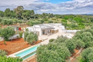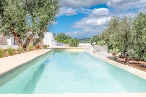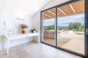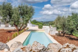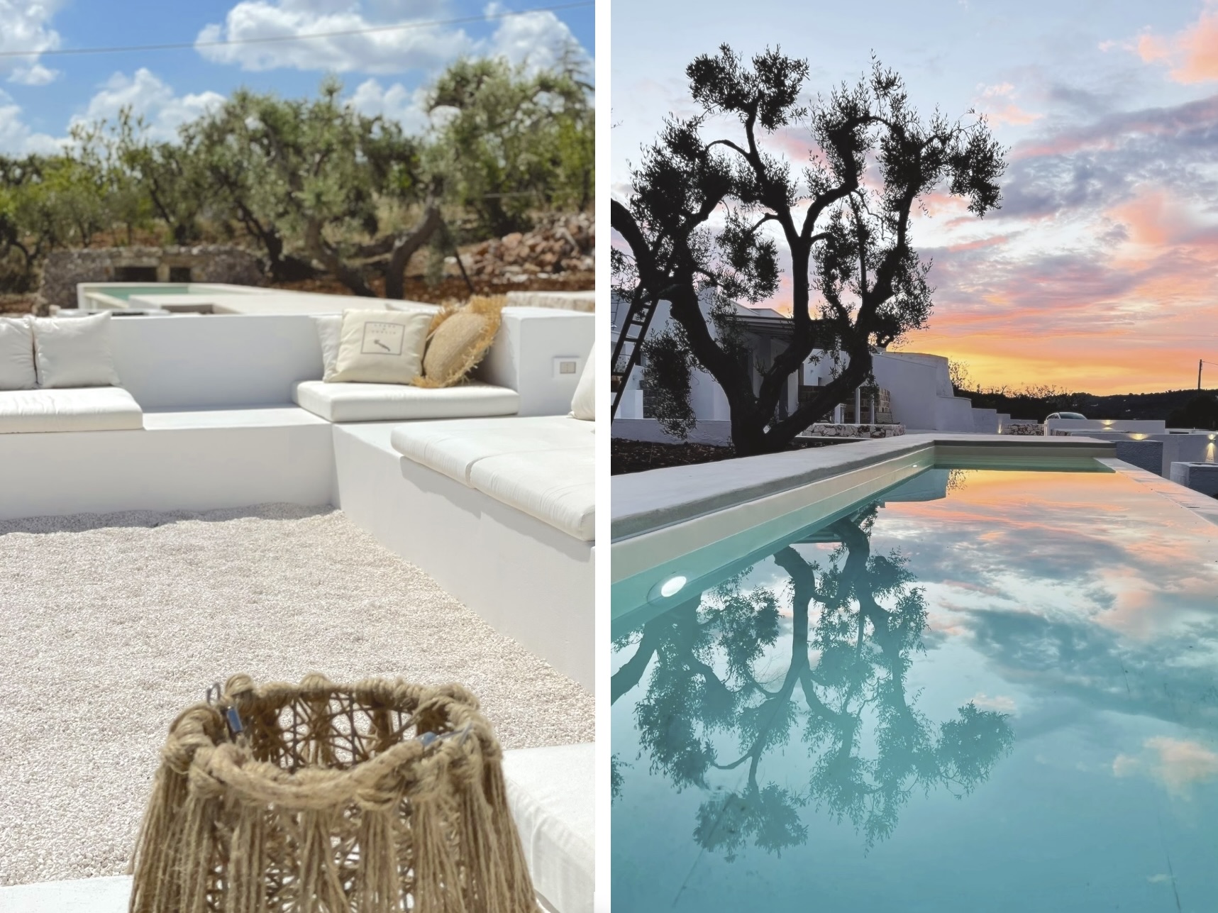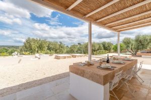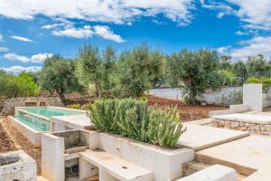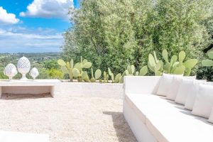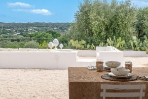 Uren kan je hier doorbrengen. Zittend aan de stoere buitentafel. Je blik eindeloos dwalend over dit magische landschap van de Valle d’Itria: Intens groen, doorspekt met witgekalkte boerderijen en af en toe de parmantige bekroningen van de trulli-woningen die tussen het groen omhoog steken. Een uniek deel van Puglia met een onverwachte rijkdom aan pittoreske stadjes die erom vragen om ontdekt te worden.
